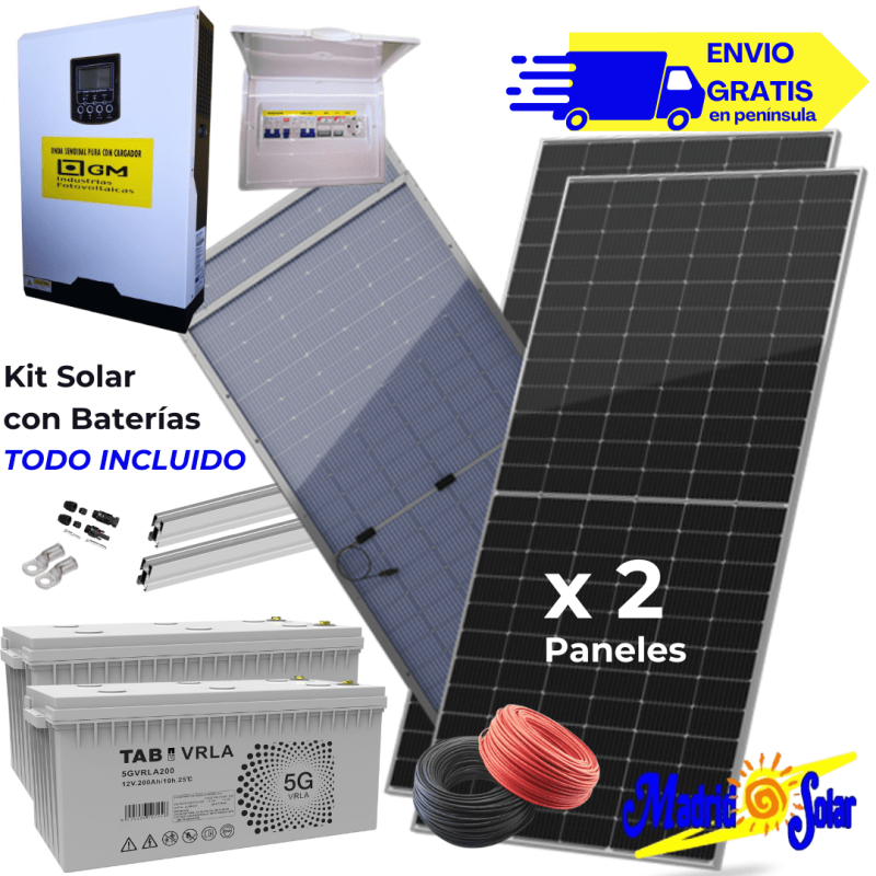 Kit solar con baterías de litio para iluminación LED, Televisión LED, Nevera A++, Lavadora con agua fría, Bomba de 1CV (en horas de sol). Este kit se puede modificar ajustándolo a sus necesidades. Portes de envío gratuitos para península. DISPONIBLE, EN STOCK LOS PANELES SOLARES CUENTAN CON 30 AÑOS DE GARANTÍA DE POTENCIA LINEAL, -0.45% DE GARANTÍA DE...